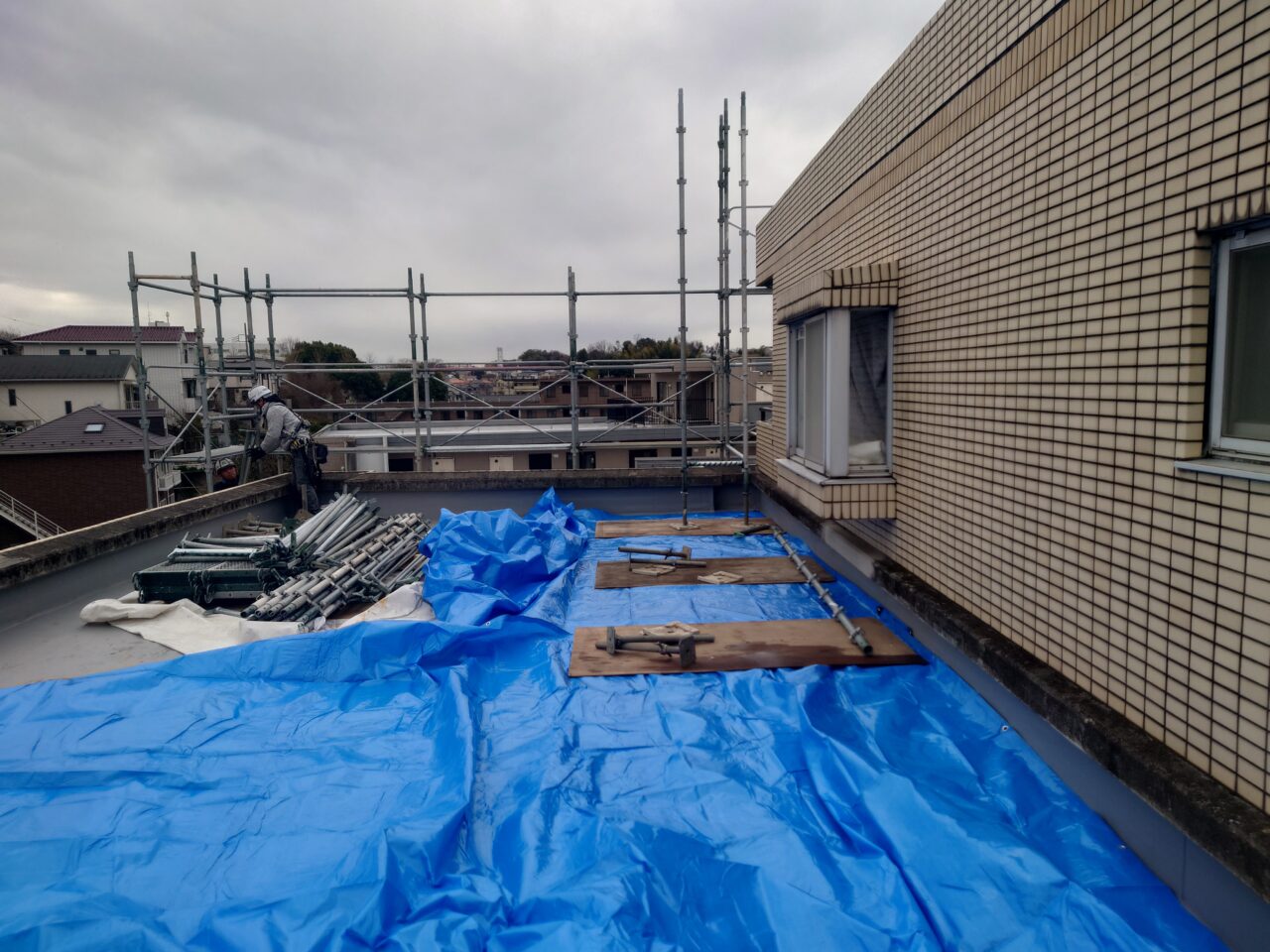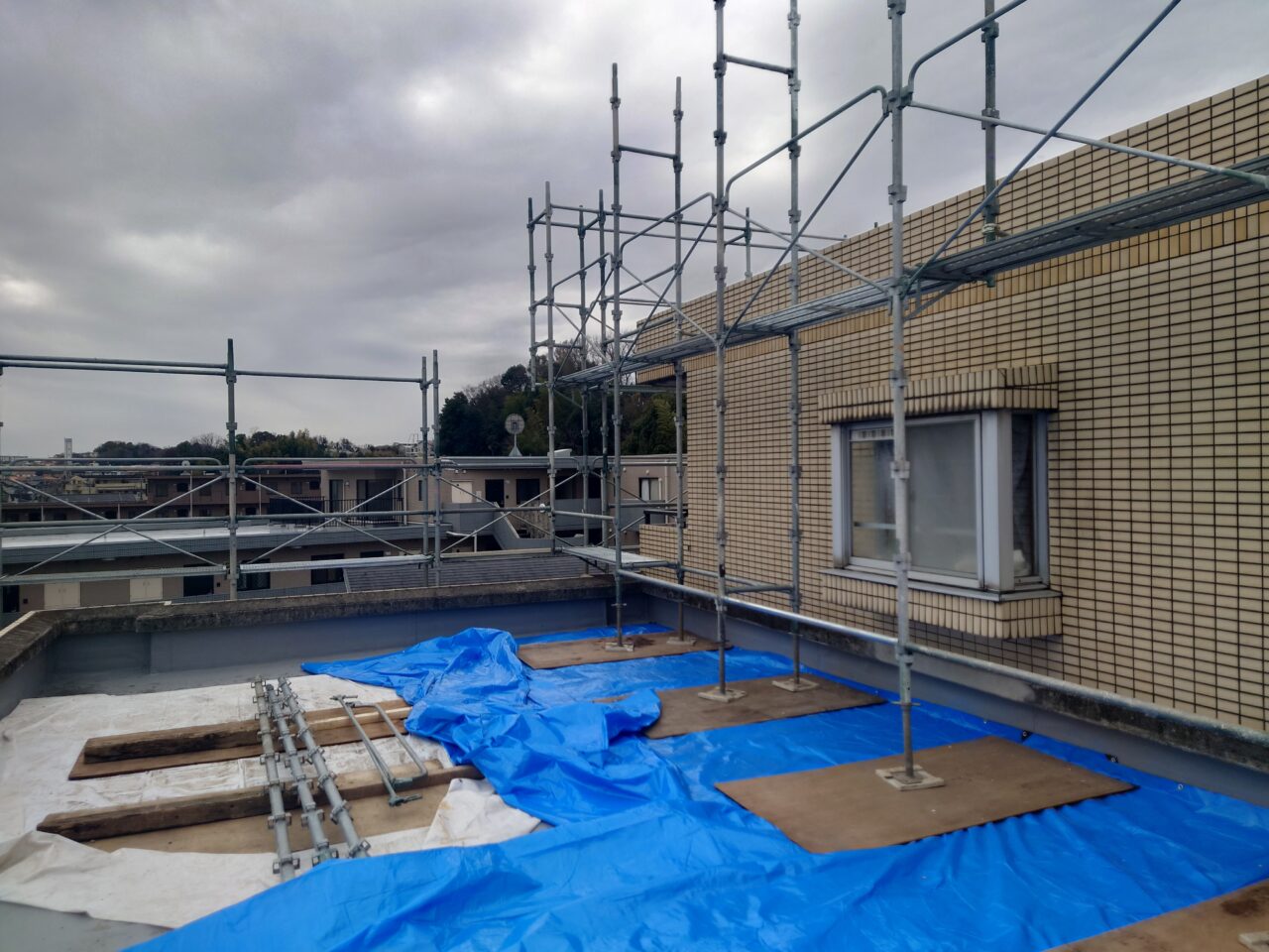 2023年2月14日 / 最終更新日時 : 2023年2月16日 藤田 雅之 現場日記 仮設足場組立2日目 仮設足場組立2日目です。 シート防水が完了しているので、厚手のブルーシートとコンパネで養生をします。 風が強くとても寒かったですが、予定よりも進んで作業終了です。 FacebooktwitterHatenaPocket