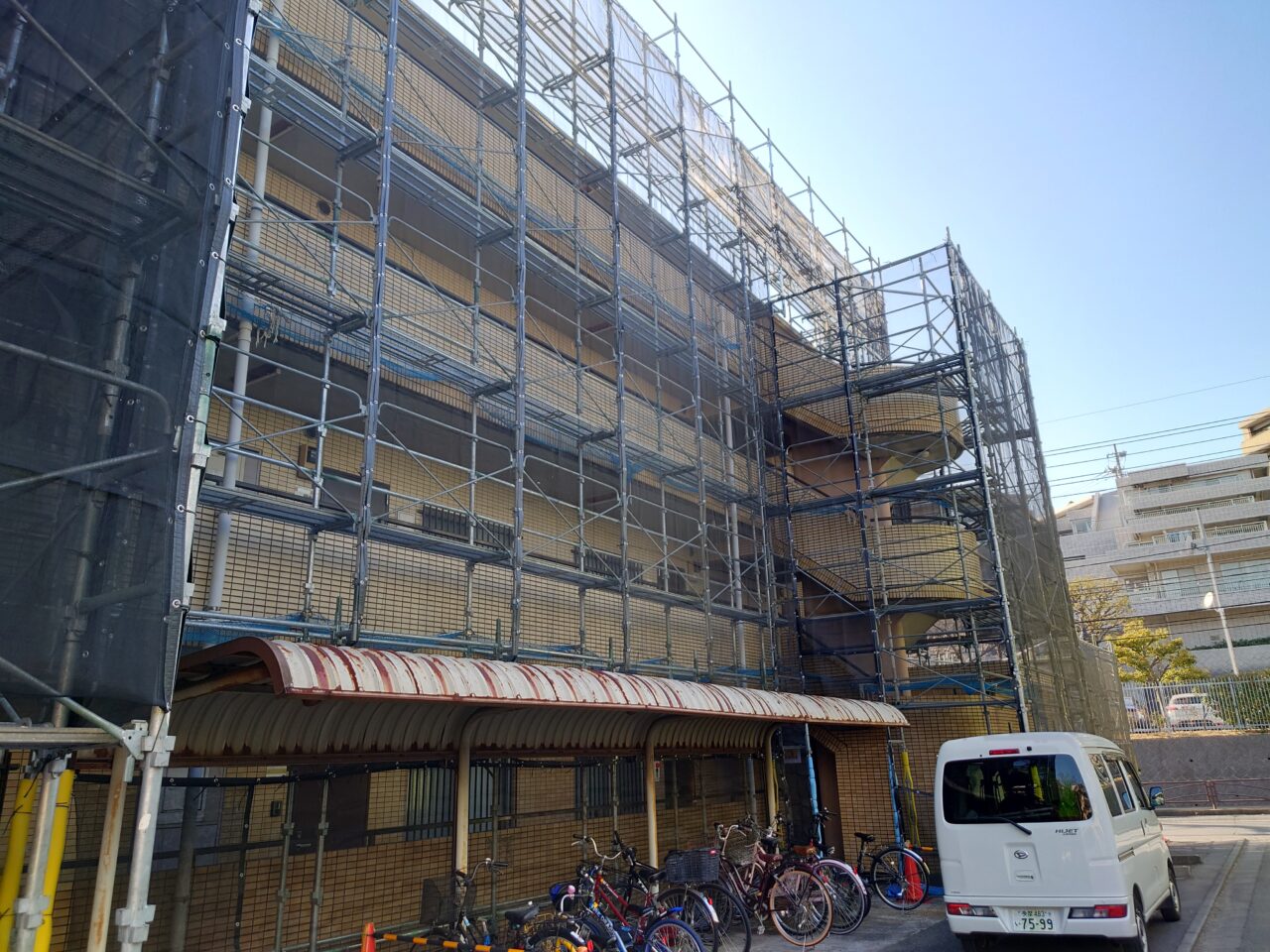2023年2月17日 / 最終更新日時 : 2023年2月17日 藤田 雅之 現場日記 仮設足場組立完了 今日で仮設足場の組立が完了しました。 来週の月曜日から高圧・薬品洗浄に取り掛かります。 FacebooktwitterHatenaPocket