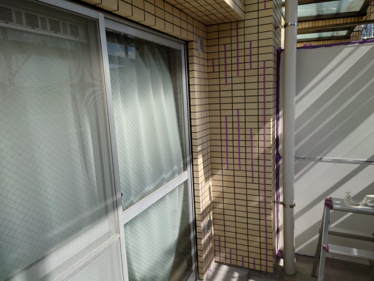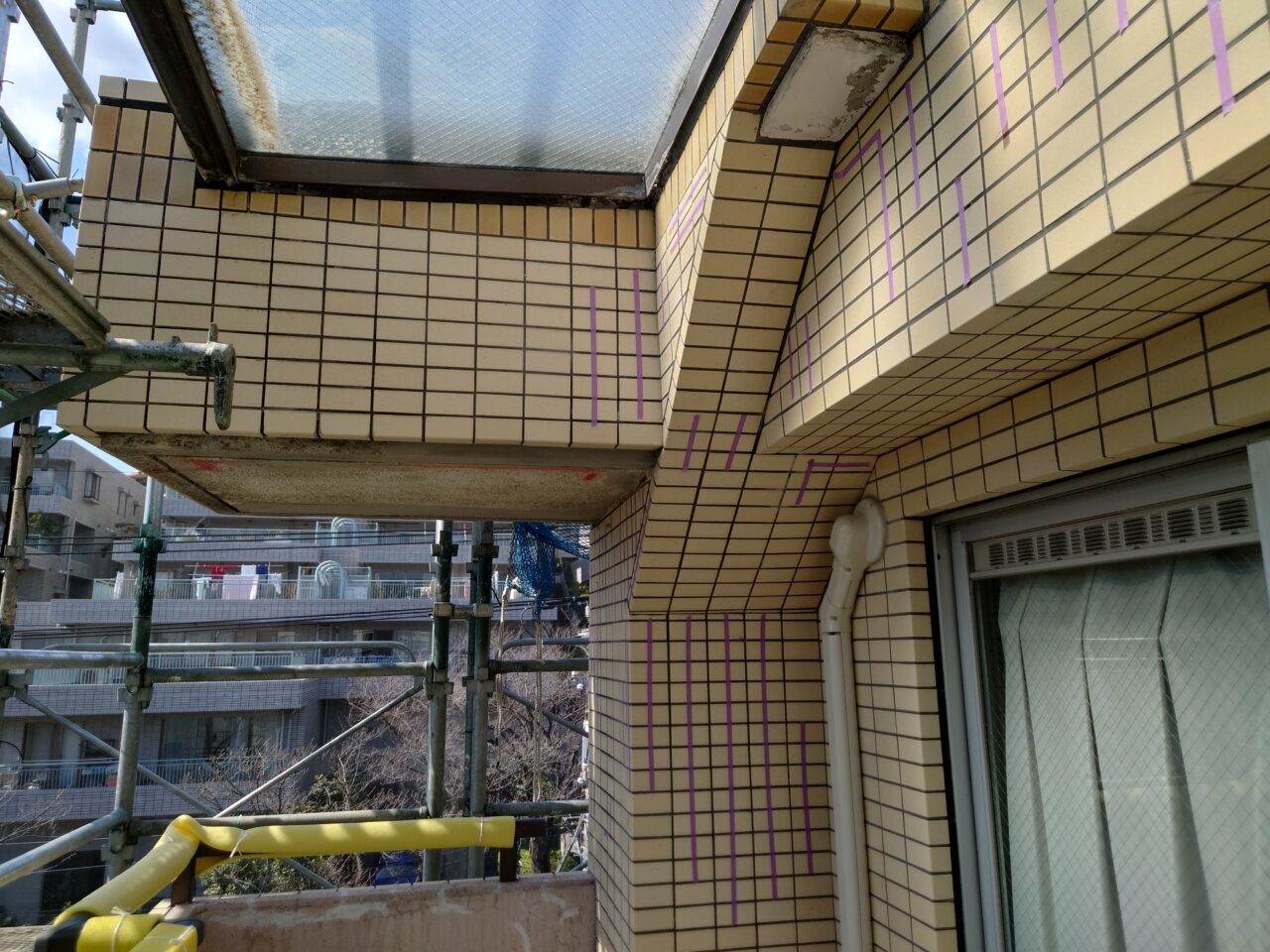 2023年3月16日 / 最終更新日時 : 2023年6月2日 藤田 雅之 現場日記 タイル面補修 今日から、タイル面の補修がはじまります。 上層階のバルコニー内はほとんどテープだらけになりました。 ここから張替え箇所の色分けをしていきます。 FacebooktwitterHatenaPocket