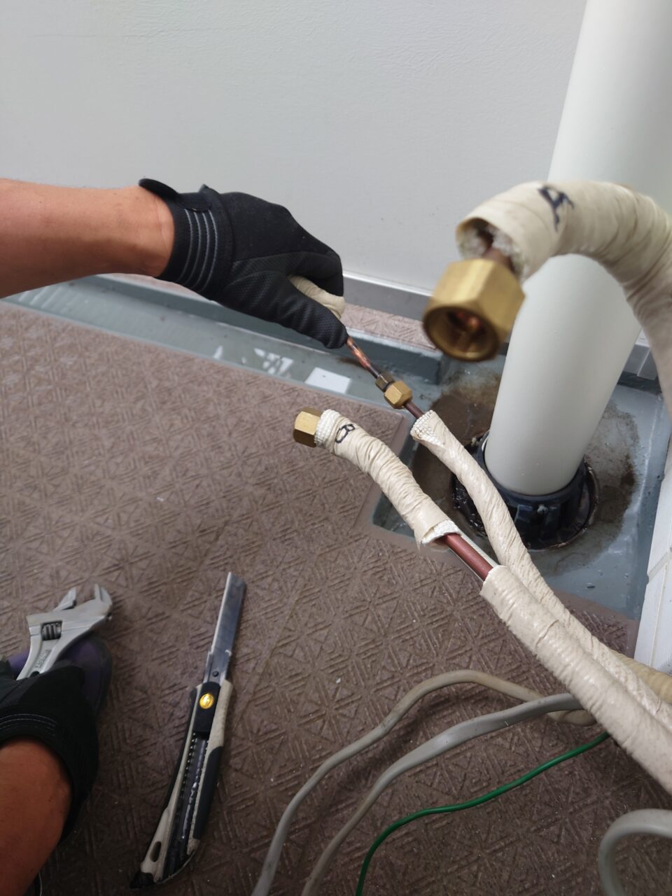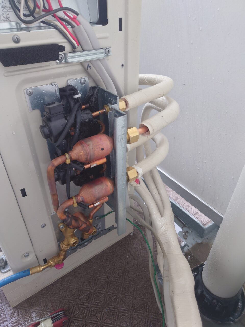 2023年7月1日 / 最終更新日時 : 2023年7月7日 藤田 雅之 現場日記 エアコン調査 今日は、エアコンの調査に伺いました。 送風しか機能しない状態です。 接続は問題無さそうですが、冷媒管が短すぎる為、 延長してみます。 施工時からの冷媒管なので、触って確認してみると 何やら違和感がありました。 何故か1本だけ延長されています。ここがあやしそうです。 ガスを充填し、異常が無いことを確認して試運転です。 問題無く作動しました。 FacebooktwitterHatenaPocket