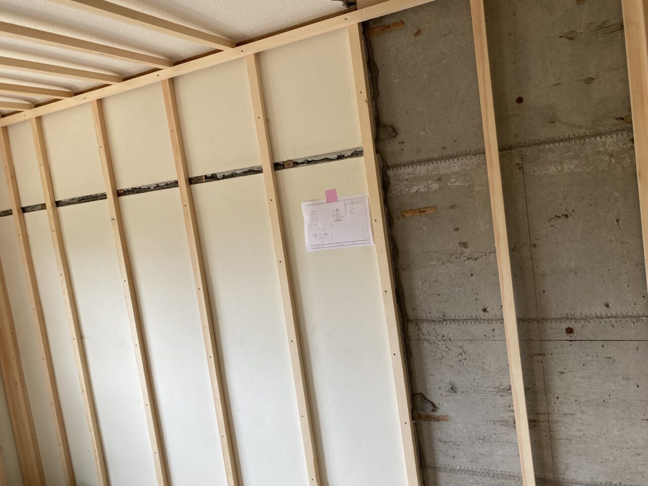2023年6月26日 / 最終更新日時 : 2023年7月7日 藤田 雅之 現場日記 内装改修工事 今日は、野縁・下地組みの確認です。 コンクリートの壁に下地を固定する為、 微調整にかなり時間を要します。 空間が少し狭くなりますが、仕上がりが楽しみです。 FacebooktwitterHatenaPocket