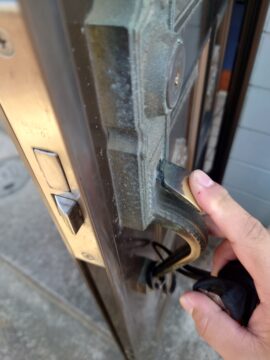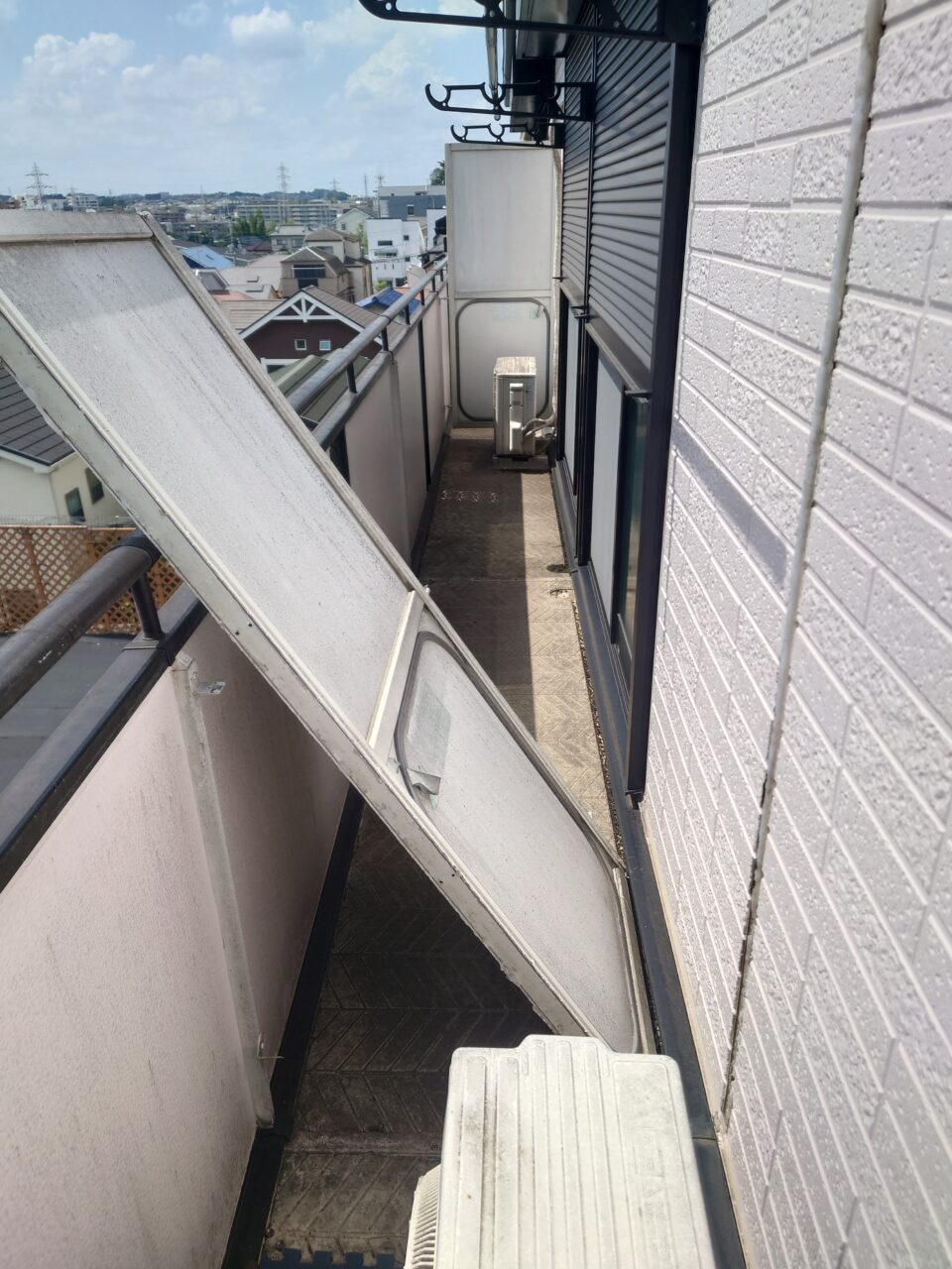 2023年7月27日 / 最終更新日時 : 2023年7月25日 藤田 雅之 現場日記 隔て板 今日は、ベランダの隔て板が壊れたとの事で確認に行ってきました。 隔て板が外れています。 高台なので強風でケイカル板が割れたんだろうと思ってましたが、 想定外の壊れ方でした。 通常は金物で固定してあるので探しましたが、 金物の付いていた形跡がありません。 さすがにコーキングだけでは壊れます。 近々、建築会社さんの点検があるそうなので、一度、確認してもらいます。 FacebooktwitterHatenaPocket