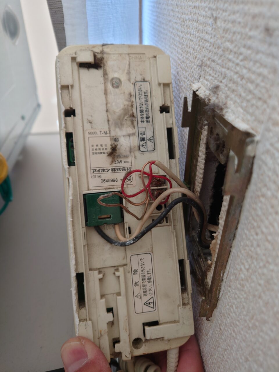 2023年11月23日 / 最終更新日時 : 2023年11月22日 藤田 雅之 現場日記 インターホン 今日は、インターホン交換の現地調査です。 鳴る時と鳴らない時、声がほとんど聞こえない時もあるようなので、 新しいインターホンに交換します。 FacebooktwitterHatenaPocket