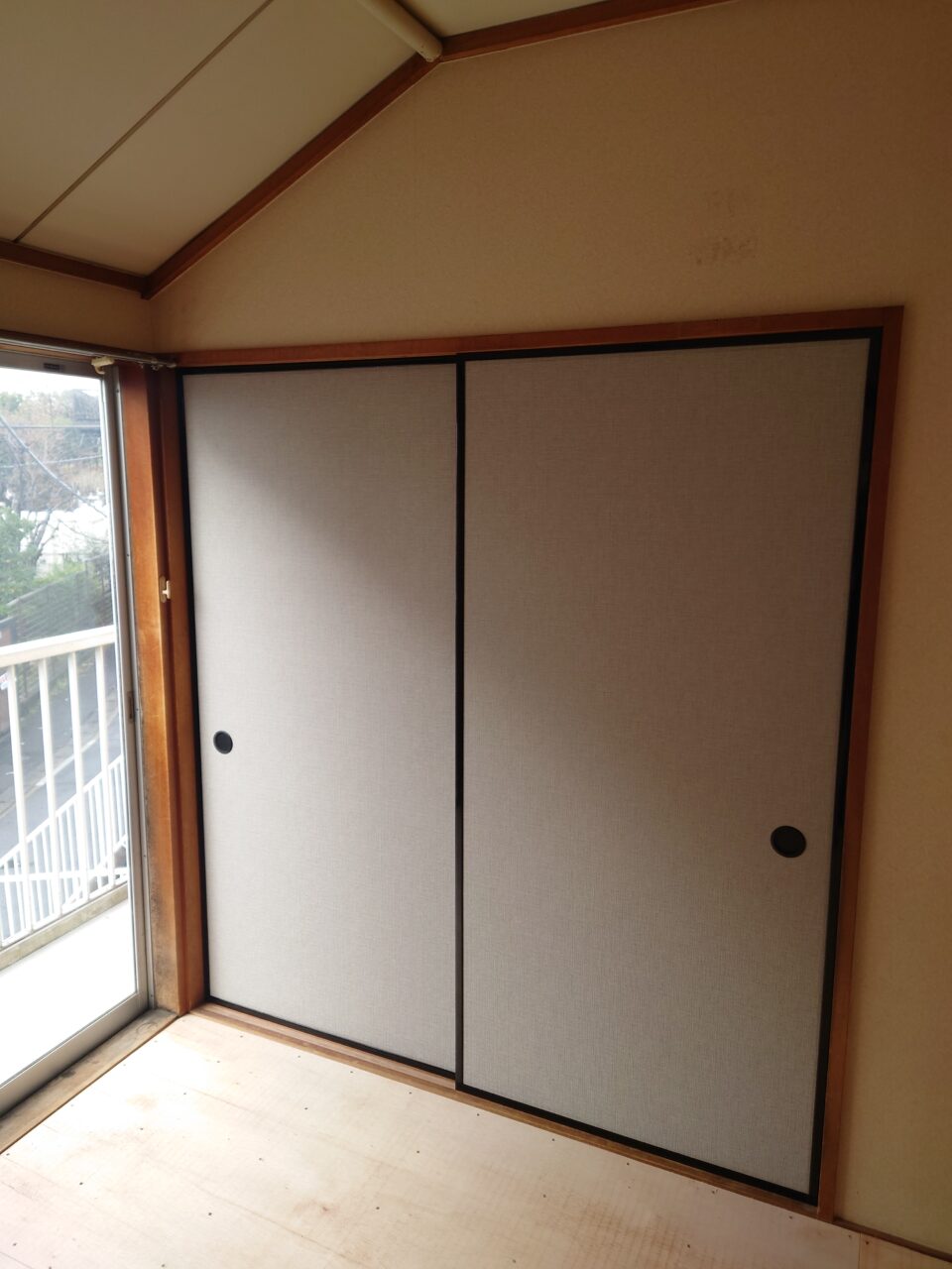 2024年3月8日 / 最終更新日時 : 2024年3月15日 藤田 雅之 現場日記 建具・襖 今日は、建具・襖納めです。 襖はクロス張りにし、建具廻りの枠はいじらずに、 開き戸・引き戸本体を交換しました。 扉材のカラーバリエーションや反り防止機能等、賃貸物件におすすめです。 FacebooktwitterHatenaPocket