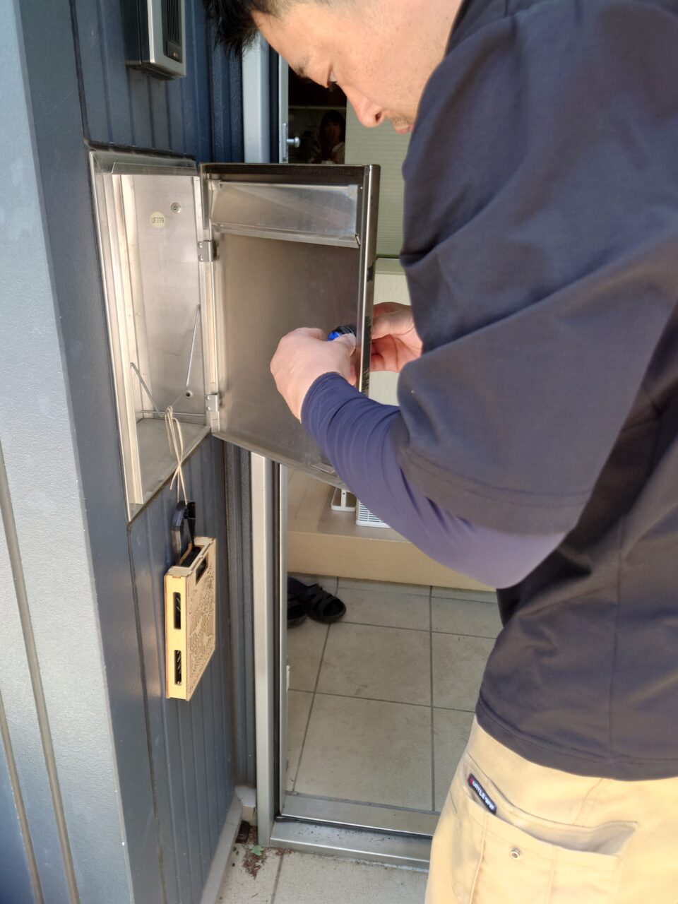 2024年5月17日 / 最終更新日時 : 2024年5月17日 藤田 雅之 現場日記 ポスト錠交換 今日は、ポスト錠交換工事の現場です。 作動確認をして、10分程で完了しました。 FacebooktwitterHatenaPocket