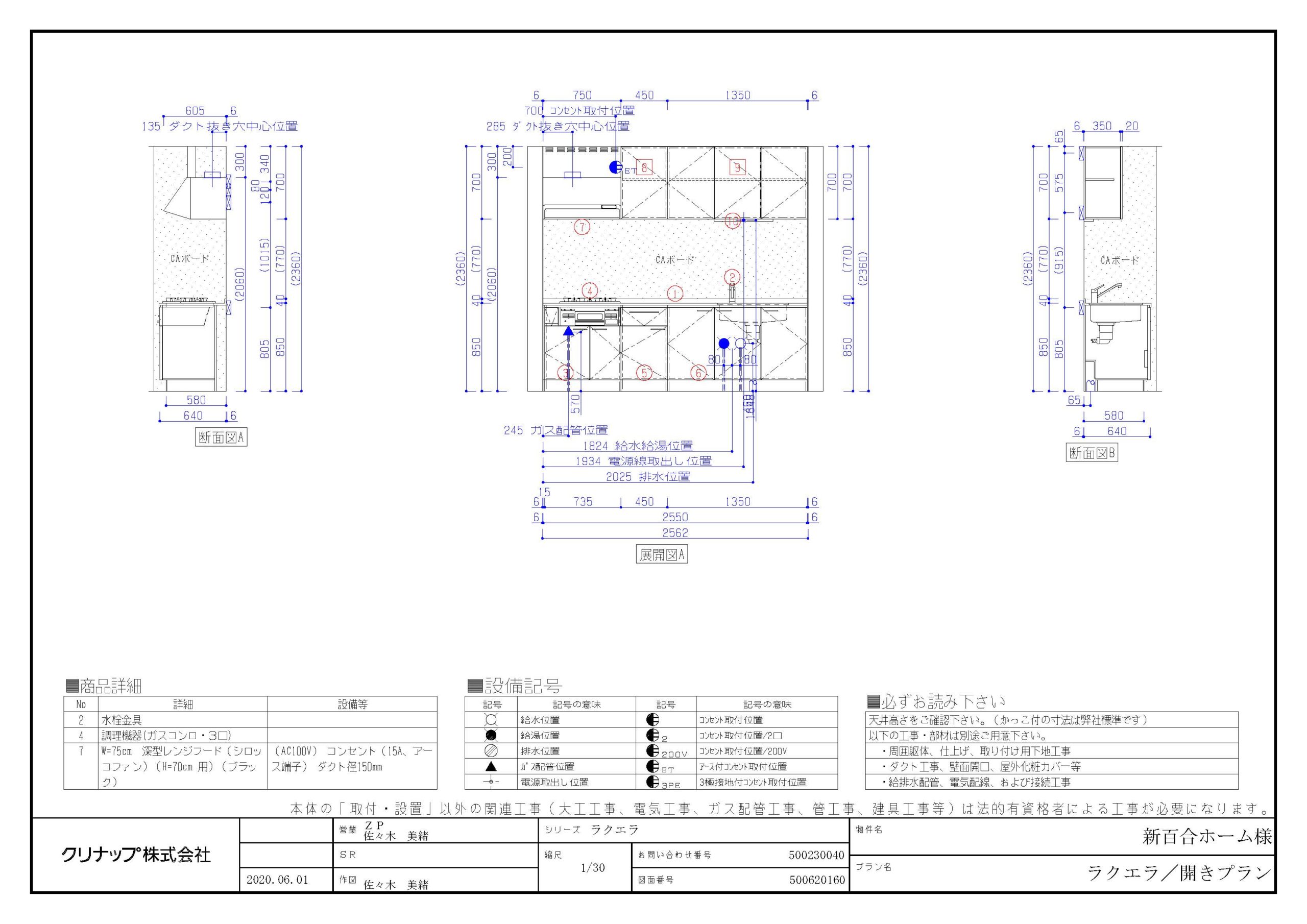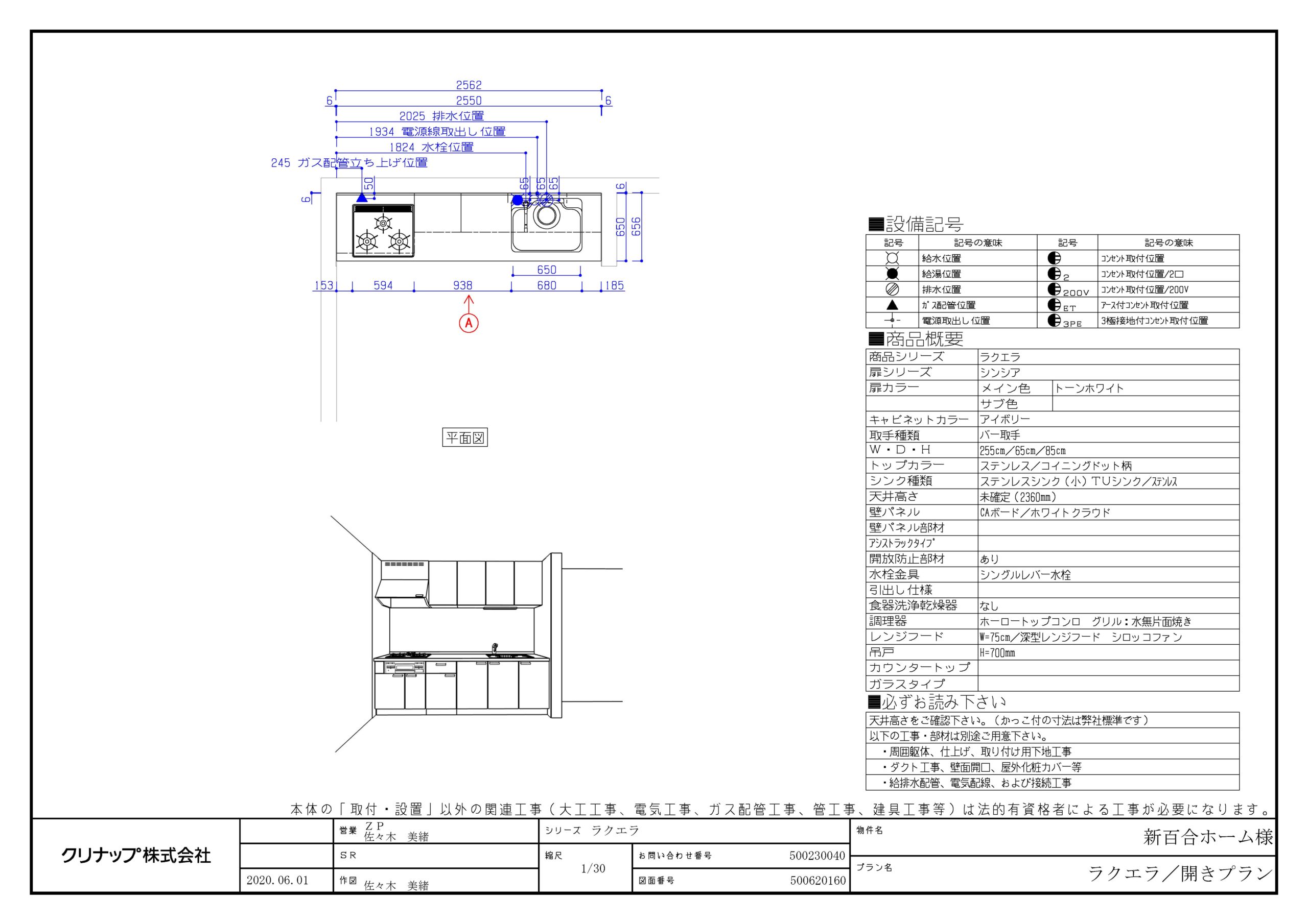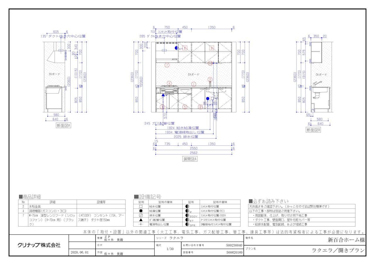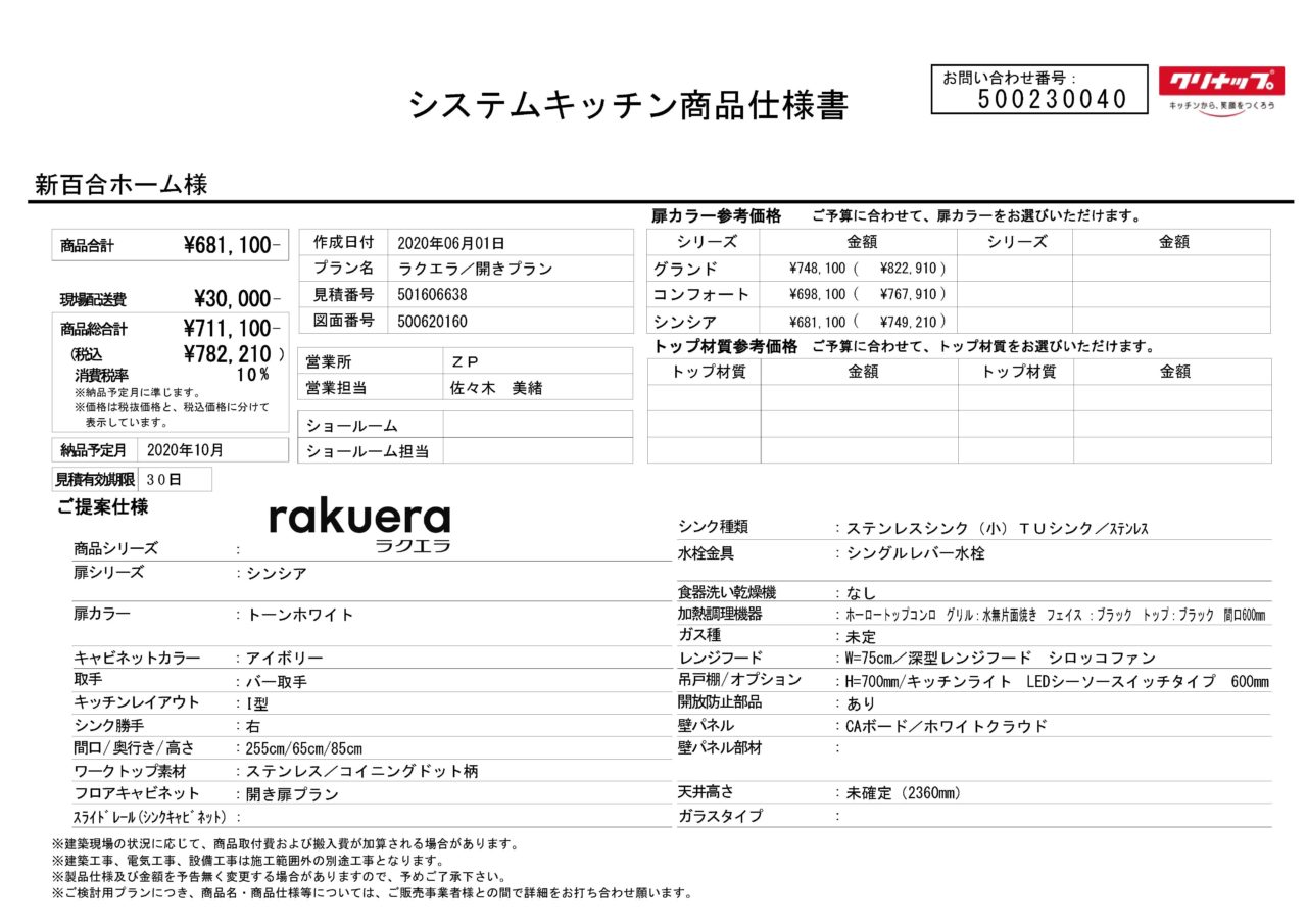 クリナップ キッチン ラクエラ W2550 開き戸プラン交換工事
