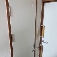 2025年12月24日 / 最終更新日時 : 2025年12月20日 藤田 雅之 現場日記 建具工事 今日は、建具の交換工事です。 施工前 施工後 ハンドルはレバーハンドルへ、トイレは明かり窓と表示錠付きへ交換しました。